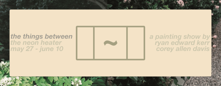 These selected works by Corey Allen Davis and Ryan Kerr span the years 2019 (the last time the artists saw one another) to the present; once a departure, now a greeting. Davis mostly fills 2021, while Kerr encircles. For each artist, painting acts as a form of memory-mining, record keeping, and wishmaking.