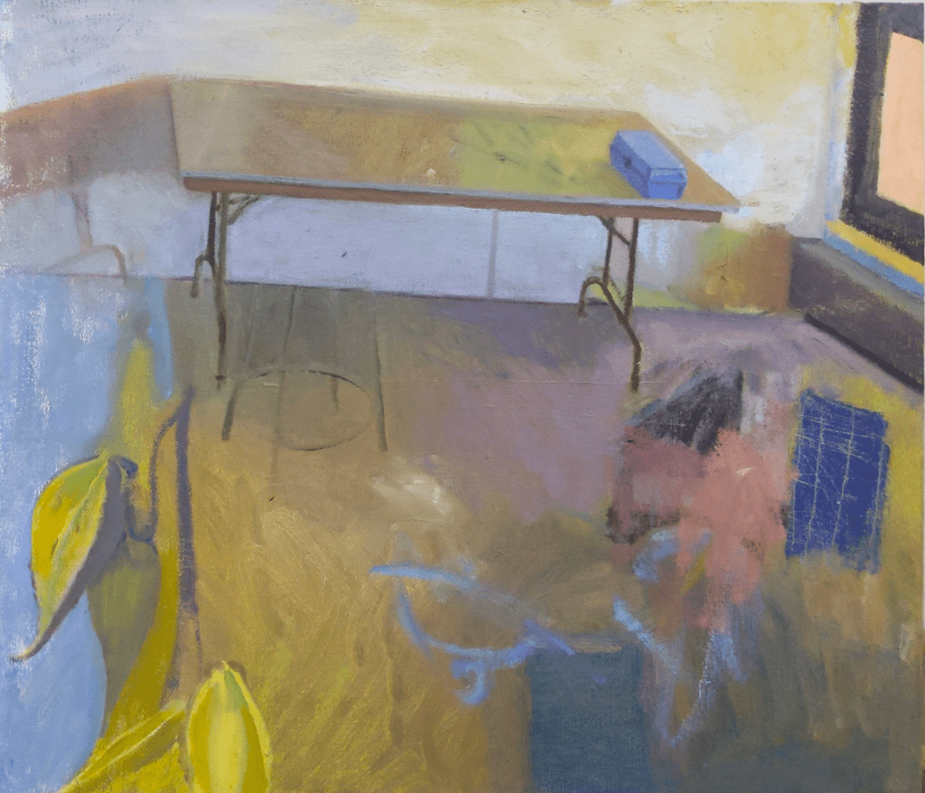 Together, the works create an oscillation between abstraction and figuration, each happily bearing the weight of the other; even trading hats. The act of painting functions for both artists as a mnemonic antenna. In this conversation, painted worlds grant access to interiority where the present moment simultaneously smacks of the past and strives to learn something new.
